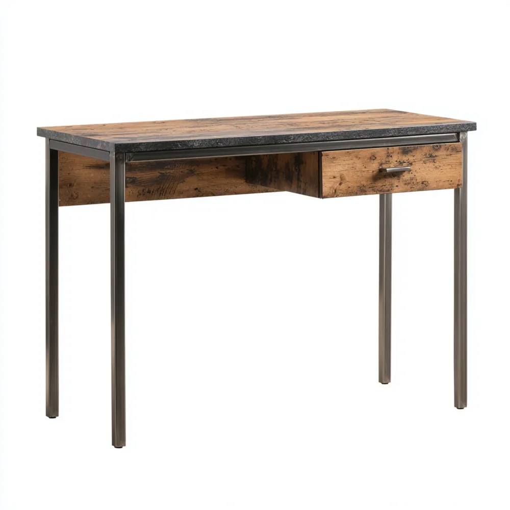 Matériaux et artisanatFabriqué en bois massif avec des pieds en métal, ce bureau allie esthétique robuste et durabilité. La finition naturelle du bois et le cadre métallique noir créent un look industriel accrocheur.